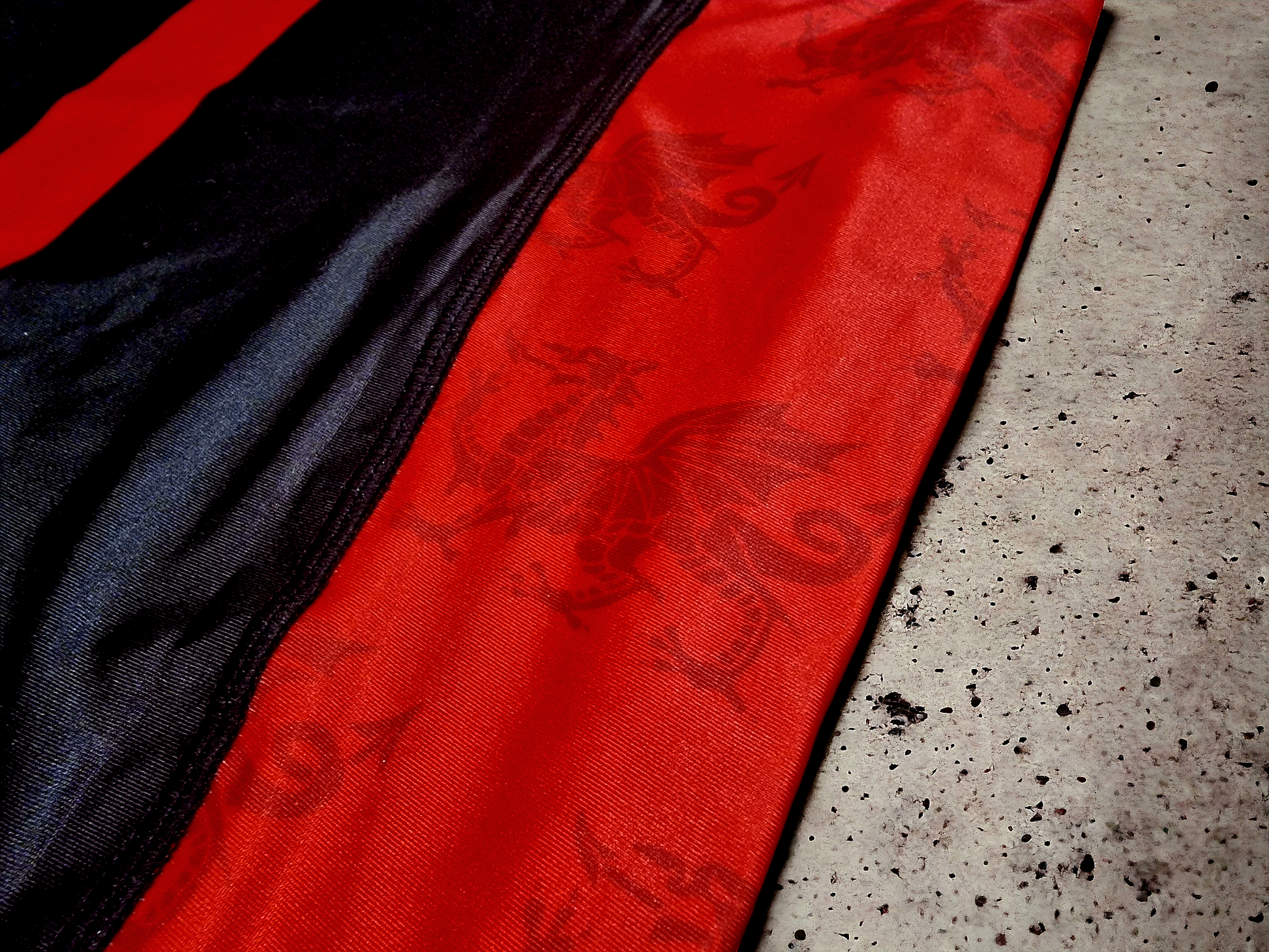 Dragon Detailing – Sublimated dragon motifs woven into the red fabric for a modern, warrior-inspired aesthetic.